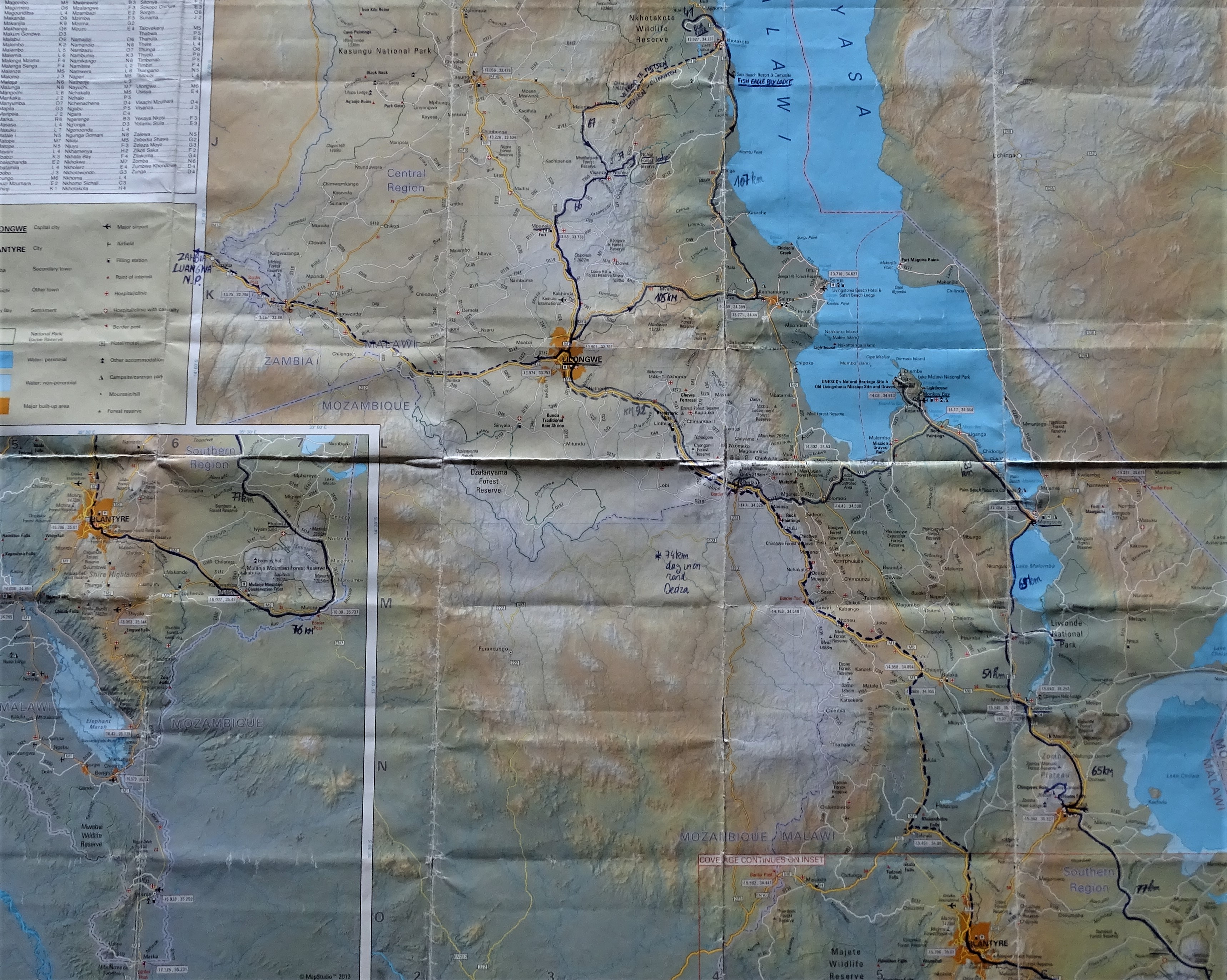 21 sep : Lilongwe over de M14 tot Salima en intrek in Village Plaza lodge ongeveer 4 km voorbij splitsing naar Nkhotankota : 105 km